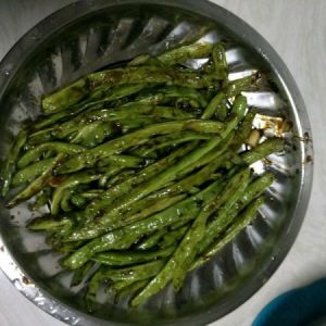 豆角炸成蔫蔫的,表面有气泡状就可捞出来