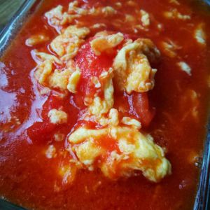 在锅中倒入油把西红柿下入过中,同时加盐,这样番茄汁才会炒出来