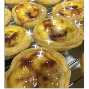 这是烤了35分钟的状态 然后上移到最上层220度10分钟 烤出焦糖色 这步要时刻观察蛋挞的颜色 见好就收 这样大火烤完了挞皮也会更松脆