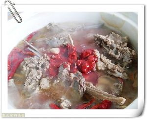 砂锅中加水,烧开,放入焯过的羊蝎子。