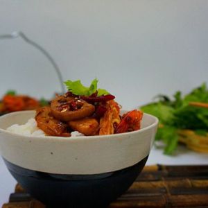 少许干辣椒,切碎的豆鼓和一勺豆瓣酱