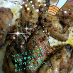 微波炉高火5分钟,翻面,在烤5分钟,喜欢吃焦一点的可以时间长些,味道不输肯德基哒