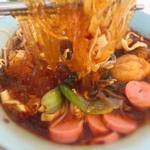 (我的粉特别耐住,你可以根据自己粉的情况来定时间;)红薯粉提前浸泡15分钟。凉水下锅煮10分钟捞出备用。