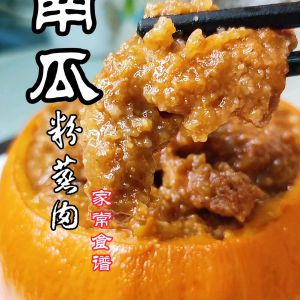 南瓜肉放底层,肉铺在上面蒸半个小时左右。让南瓜充分吸收了肉香,制作完成。