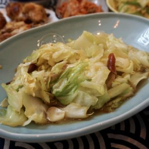 煸炒至包菜稍软,放2勺蒸鱼豉油,1勺蚝油,一小勺糖