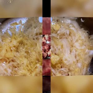 酸菜翻炒至稍干,加水或高汤,下入排骨,加入适量的盐和十三香,大火烧开,转中小火炖2小时