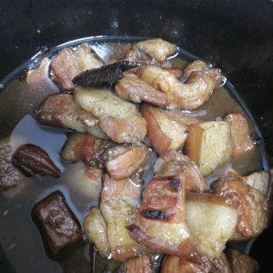 倒入砂锅,加生抽加少许盐,加酱油,加冰糖,大火煮开转小火50分钟