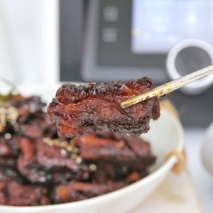 3、程序结束,音乐响起,将排骨倒出并清洗干净,沥干水份备用。
