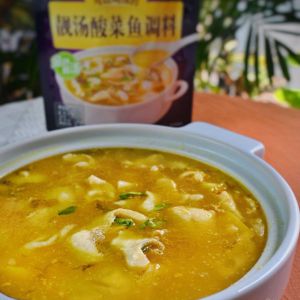 加入1500毫升的开水,加入调味包盒和酸菜包煮开,再下入鱼片,中小火煮开1分钟即可