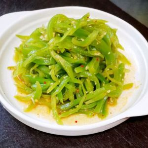 莴笋削皮洗净切细丝,加一小匙食盐盐五分钟