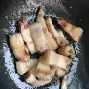 五花肉切块热油炒金黄