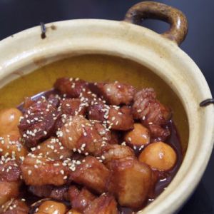 加入南乳,耗油,盐,酱油,鹌鹑蛋也可加入少许冰糖,加入2碗清水熬。