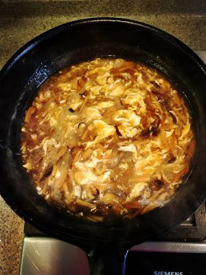 卤的做法:锅内放油,花椒葱蒜爆香,把花椒取出、炒黄花,木耳,香菇,加水煮开,加盐,生抽,老抽,加入水淀粉搅匀,最后打一个鸡蛋。加香油关火
