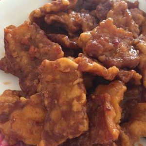 把炸好的肉片放一边 把调好的料汁放入锅中 把汤汁熬到黏糊状 在倒入肉片 。等汤汁全部包裹好肉片即可