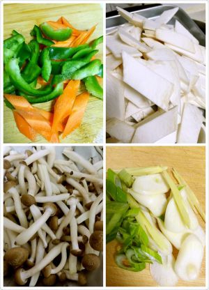 蘑菇洗净切好。配菜、佐料备好。