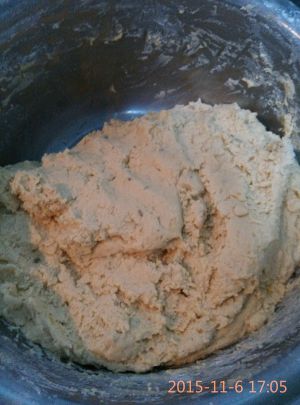 把红薯泥和糯米团放一块揉成一个团,放在那里醒一会,大概半小时。没时间可以不醒!