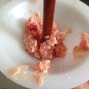肉末是菜场代加工的,拿回家将所有材料混合搅拌均匀盖好保鲜膜冷藏2小时