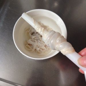 之后冷水下锅煮沸关火焖上15分钟取出剪一节节