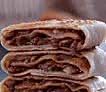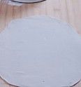 面团饧好,滚长一点,分三等份,取其一,按扁,擀成薄片。