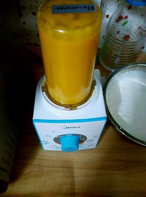 芒果3个去皮榨汁,1个装饰用