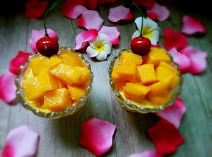 芒果切粒摆上装饰