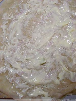 做嫩肉五方的饼皮,温水和冷水分别和面团,然后两个面团揉到一起,醒发半个小时。