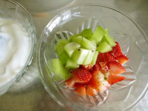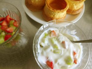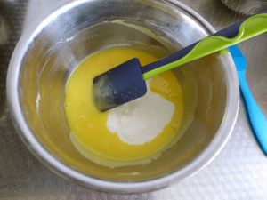 将60克酸奶加入蛋黄液中,翻搅均匀;