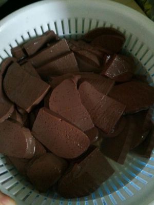 这是两块鸭血,微辣,喜欢吃辣的可以多加几个辣椒