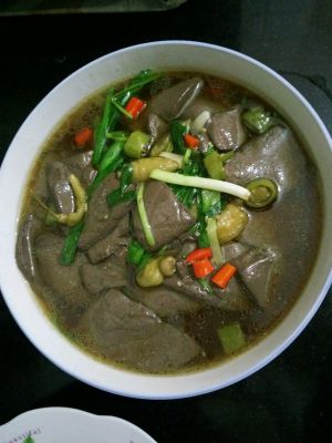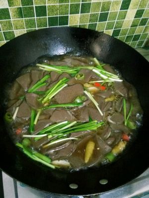 放鸭血、韭菜、胡椒粉煮几分钟,起锅前加适量鸡精即可
