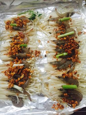 蒜蓉金针菇烤虾