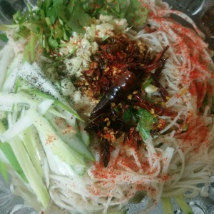 放适量的盐,鸡精,醋,生抽,辣椒油,辣椒粉,花椒粉,香油