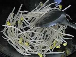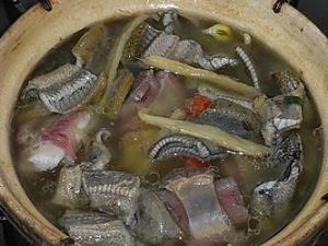 .把烧好咸排骨盛在砂锅里再把煸好黄豆芽盛在砂锅烧滚,再把鳝片一片片放在上面,烧滚,再放鸭血(忘了拍)烧滚加鸡精胡椒粉用金花菜、枸杞点缀下端上桌,好诱人,好有食欲,味道顶呱呱哦!