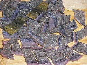 食材:黄鳝让商家杀好开成鳝片,洗净。