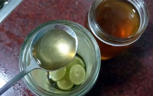 淋入一层蜂蜜,再铺放一层柠檬片,如此类推。