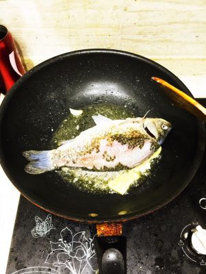 加鱼下锅煎到两面发黄