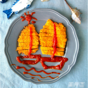 鸡胸肉解冻,切成薄片。入所有辅料(蛋液和面包糠除外)混合成的酱汁中腌制片刻