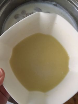 煮沸后改为小火,这时需要两勺面粉在碗里 加入适量水和橄榄油搅拌均匀加入锅里,接着不停的要搅拌锅内,再一次转中小火煮沸。