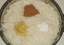 加入擦成茸的姜末、五香粉、盐、面粉、搓碎的馒头