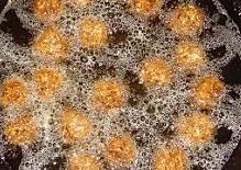 将搅匀的萝卜面糊搓成小团子,放入6成热的油锅,中火慢炸至金黄即可