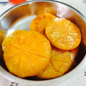 这是第三次做的,全程高压锅煎的,刷上黄油就放南瓜饼进去煎,然后盖上盖子3分钟就会有焦焦的样子,表面脆脆的