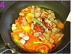 加入一大勺番茄酱、一枝鲜迷迭香,加入适量的清水,大火烧开;