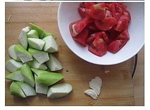 加入少许糖调节酸甜的口感,略炒至蕃茄软烂加入丝瓜块一起翻炒至熟即可。