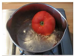 蕃茄洗净放入沸水中烫几秒冷水冲凉去皮切成滚刀块;