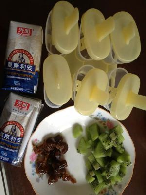 把果粒和酸奶放入模具中,入冰箱冰6个小时左右就可以拿出来吃了!(吃之前可以把模具在水龙头上冲一下就很好脱模了)