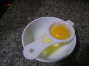 蛋清水分太大,做出来的奶液不够粘稠不好刷,因此只取蛋黄。蛋清可以存着炒个鸡蛋炒饭,西红柿炒蛋什么的。