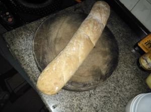 取出超市里买到的法棍。