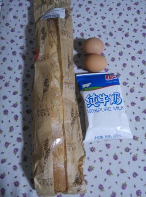 主料:法棍一根,牛奶1袋(用不了),鸡蛋两个。