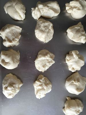面团放入盆中,盖上保鲜膜,放入30度左右的地方发酵至2.5倍大,现在的天气,室温发酵即可。