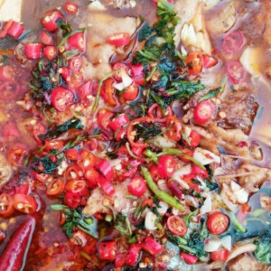 菜煮好后停火两分钟,放入切碎的辣椒,蒜,香菜。我又放了两勺辣椒粉…