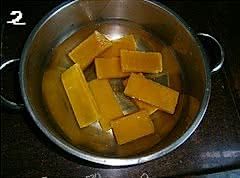 冰片糖放进锅里,加入3碗清水;